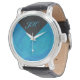 カラーGalore海ブルーとブラックアクセントモノグラムショップペレザーストラップの腕時計あなたのイニシャルを含む黒い三角形のアクセントと鮮やかなブルーのバーストを備えて忘れカスタマイズ。我々のカラーは渦巻き状に満ちており、我々の才能あるアーティスト、トレーシー・ヴァン・ワゴナーによって作られた特徴的なテクスチャーはグラフィックのドライブラシスタイルで。青もしが色だお気に入りのから、私たちの海ブルーのギフトとアクセサリーパーソナライズされたが大好き。
