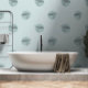 海の模様の青と緑の壁紙の下でウミガメと泳ぐ。ビーチハウスオーシャンフロントコテージまたはアンダーザシー男の赤ちゃん子供部屋テーマに最適。任意カスタムの背景色。色を変更するにはデザインツールを入力する。画面の手の側にある離れ背景ビューを選択し、デコに合う色を選択する。