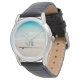 見モノグラムのて男性へ。熱帯ターコイズ海水とビーチ砂は、魚釣りポールの背景画像で、3つのイニシャルのテンプレートである。ウォッチ顔は任意のスタイルバンドで動作。レタリンググランジはスタイルで濃い茶色と赤の色。塩水の漁師のための完璧な贈り物。