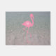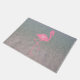 海水の背景の写真上のピンクのフラミンゴのイラストレーションを特色にする玄関マット。 モノグラムを個人化して下さい。