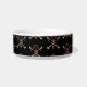 このペットボールはかわいい海賊プリントのデザインの黒いアクセントのストリップとの白で示されています。