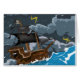 嵐の海賊船。雷雨と雷雨。嵐に巻き込まれた木造船。アーラー海賊船!