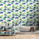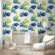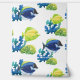 水彩海海底魚とサンゴ礁の壁紙を青、黄、緑で彩る。