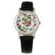 深いレッドボタニカルさくらんぼパターン 腕時計