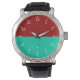 深紅とアクアの背景にクラシックの白い数字を付けた美しい時計。エレガンスって誰が退屈だと言うの?