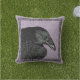 白いアクセントを混ぜ合わせたプリンを背景に黒い枠に黒いカラスの頭と肩を持つ屋外布製の化粧華美枕。