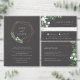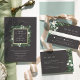 私たちの温室モノグラム結婚式招待状は、あなたのイニシャル、モノグラムまたはデュオグラムを上部に備え、緑の水色の葉の正方形のリースの中に囲ま葉、金ゴールドフォイルトリムと劇的な地球の色調の背景に小さな白い花と。冬のモダン結婚式、ロマンチックな秋や秋の結婚式、または夏の夕べ結婚式の植物的な傾向を取るエレガント。