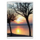 2つの黒い木の間にオレンジ色の太陽を反射する湖でロマンチックな夕日。