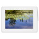 私はこの写真のすべてを-水に木そして白い雲の青および緑、円形のスイレンの浮いている葉および先の尖った湖の草および特に反射愛しました。