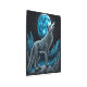 青と黒のファンタジーアートは、満月の前の山に立っている一人の狼を描く。アイはアートを生み出した。