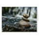 小さい池の滝によって積み重なる滑らかな石のトリオ。
