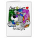 ユニークなシュナウツァーのギフト! 犬の恋人があることと私達のかわいい平和、愛、シュナウツァーのTシャツおよび他のプロダクトを持つ一般に世界についての声明をして下さい。 すべてのシュナウツァーの所有者はピースマーク、小さい紫色のサングラスおよび虹の絞り染めのバンダナを身に着けているこのヒッピーの漫画犬を崇拝します。 彼の目は閉鎖して、彼はリラックスの詠唱をしています。 背景はまた虹の絞り染めです。