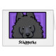 大きい紫色の正方形の中のかわいいかわいいのスキッパーキの漫画。 イラストレーションの下に犬の品種の名前はあります。 ペット所有者のためのユニークで、チャーミングなスキッパーキのギフト。