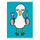 ナイフおよびフォークを握っている空腹なカモメの漫画のイラストレーションを特色にすること。