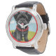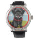 漫画スタイルの赤い襟の可愛い黒犬 腕時計