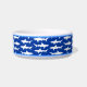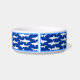激しい犬または猫のためのかわいい鮫の食糧ボール。 あなたのペットネーム、青い背景色および青いボーダー色はすべてカスタマイズ可能です。