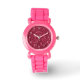 濃いピンクの赤いマゼンダフェイクーの輝きと数字 腕時計
