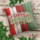 美しい、ユニーク、クラシック、トレンディー、クラシックと装飾クリスマスの休日のグリーティングクッション暗い赤かわいらし、森の緑、そして素朴な風化した木造のコテージ農家のスタイルのプランクスのパターンの背景に白い色の「メリークリスマス」引用文文字。