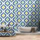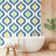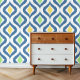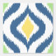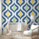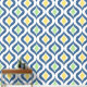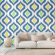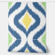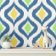 濃い青の黄色の淡緑色の白いイカットパターン 壁紙