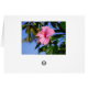 白い喉を搭載する濃い黄色のハイビスカスを特色にするこのカードは多くの大事な行事のために個人化なるために完全です。 背景ではココヤシの木によって戴冠する熱帯庭はあります。 カードの背部で美しいピンクのハイビスカスはあります。