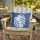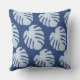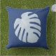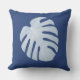 濃紺の熱帯葉の枕。 前部に背部のパターン(の模様が)あるな葉が付いている1つの大きい葉が、あります。 葉は濃紺の背景で淡いブルーですが、あなたが好むあらゆる色に背景を変えることができます。
