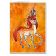 この設計特微鮮やかなオレンジおよび赤い調子の火色のユニコーン。