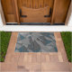 灰色の三角形の切り出しで粗い濃い青の部分 ドアマット