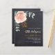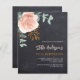 黒板の背景大きな飾バラ金ゴールドと赤面ピンクのフローラ、バラの花と緑の水色のユーカリ葉カリの、スリグ、緑と金ゴールドのスペリフェイクグがある。名前とパーティー・詳細のパーソナライズおよび追加1枚= 1枚の招待状を印刷したエッジからエッジ