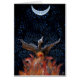 華麗な新月(顕微鏡の珪藻植物)の方に紅葉の炎から上がるヒマラヤスギ木の風化させた残物によって形づくフェニックスのモザイク。