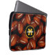 このサッカーパーソナライズされたをテーマにしたネオプレンラップトップスリーブは、黒い背景に無作為に配置された一見無限に見えるフットボールのパターンを特徴カスタマイズ – 黒と金ゴールドの円ペンダントに名前とモノグラムを付けカスタマイズて、サッカーのチームの色にマッチする円ペンダント、モノグラムと名前のののをを持z_d_zynes