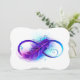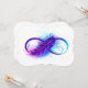 白い背景に紫と青絵を描の明るい色の美しい羽を持つインフィニティのシンボル。