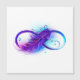 白い背景に紫と青絵を描の明るい色の美しい羽を持つインフィニティのシンボル。