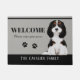 無頓着なチャールズ王スパニエル犬のイラストレーションを特色にするかわいい玄関マット。 カスタマイズ可能な背景の色および文字。 チャールズ犬の恋人または騎士王スパニエル犬の所有者のための完全なギフト。