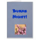 青い文字が付いている青い背景の「ピンクのヒース」の写真: 「焼跡夜!」