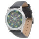 照明抽象芸術光沢のあるティール(緑がかった色)紫色のフラクタルアート 腕時計