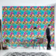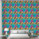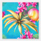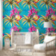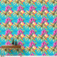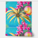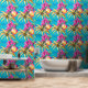 ビーチの施設に最適;海岸沿いのレストラン;ホテル;ロッジ;リゾートとシャレー,このシームレスな繰り返しパターンは熱帯のを特徴とし葉て、その上にピンクの花と丸い島の果実がターコイズの青い背景に設定され鮮やかる。ビーチの屋内を持って、このエレガントとトレンディーのハワイアンインスパイア簡単で、滑らかで質感のある壁の両方に理想的な壁の壁を剥離し、スティック。