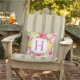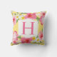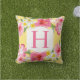 熱帯イエローピンクの花カスタムモノグラム クッション