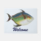 簡単このウェルカムマットをカスタマイズするカスタム文字!ヴィンテージイラストレーション海洋生命動物デザインは、海で泳ぐ熱帯オパール魚を特徴とする。