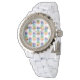 熱帯カスタムパイナップルの果実パターン女性の腕時計。女性と女の子のための高級ギフトアイディア。彼女の名前でパーソナライズ可能。name、エレガント monogramまたは引用文のスクリプトタイポグラフィテンプレート。自分でユニーク豪華なタイムピースを作りなさい。フルーティスタイリッシュな背景画像とダイヤル番号を持つデザイン。誕生日、クリスマス・ホリデー、スウィート16、卒業式など結婚の高級プレゼント。妻買、ガールフレンド、妹、母、母、友人、従兄弟、叔母、おばあちゃん、娘など。エキゾチックなレインボーアイコンプリントとシックなレディースアクセサリー。