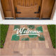 熱帯グリーンブラウン葉のスクリプトへようこそ ドアマット