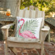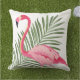 熱帯ピンクのフラミンゴとパーム葉の アウトドアクッション
