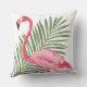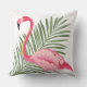四角スタイリッシュい屋外装飾用クッションデザインはピンクのフラミンゴと緑のヤシのを備え葉ている。白の背景。