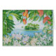 マンゴ、カカオ、パンノキおよび蘭が付いている熱帯島の水彩画。