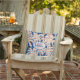 オレンジ、タン、赤ちゃんブルーのプリントとネイビーブルーのトロピカルパームの木のストライプ、あなたの名前とシックなレタリングでモノグラムの正面の透明な白いオーバーレイ上で任意の色で準備ができている(削除またはレイアウト上で移動できる)。 自分のために作る与えか贈り物として。屋外または屋内のファブリックと3つのサイズから選択。