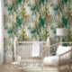 緑のベージュとティール(緑がかった色)竹のスタンドを備え、柔らかい筆遣いで作られた活気に満ちた魅力的な壁紙与えは、超現実的なファンタジーの魅力。デザインきらめくはエーテルの光を持ち、魔法感、柔らかさ、洗練された魅力を持つ任意のインテリア...ビジネス素晴らしロビー、オフィス宇宙、玄関、自宅