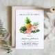カスタマイズ結婚可能なレモンのメニューカード。ヤシのイラスト、バナナの葉プルメリア、葉ハイビスカス、などの熱帯植物の水色のを特徴とする。日付と食事の選択を追加してパーソナライズ。夏の結婚式、赤ちゃんシャワー、ブライダルシャワー、誕生日などに最適なトロピカルメニューカード。