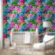 この壁紙鮮やかは、ピンク、ブルー、グリーンの色合いの緑豊かな離れ花やエキゾチックな花の複雑なパターンを特徴とするトロピカルフローラのタペストリーである。このデザインは左右対称で繰り返され、熱帯雨林の鬱蒼とした葉を連想させる自然のモチーフが続く。鮮やかなピンクの花がクールの音に対して目立ち、目を引き立てている。
