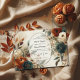燃えたオレンジと青の秋の結婚花 出欠カード (正面/裏面)