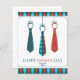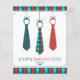 レトロクールな幸せな父の日のイラストレーションと青と赤のネクタイパターン(の模様が)ある。個人クリックカスタマイズメッセージを追加するためのボタン。