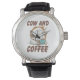 牛とコーヒー、ウェスタンおもしろいガール 腕時計
